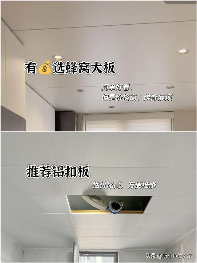 老老实实选300*600纯白色哑光铝扣板,价格实惠、防潮耐用,后期浴霸、灯具坏了,随便拆一块就能维修,实用性拉满。